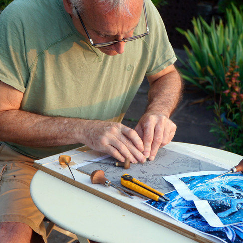 My state of the art drying system! I started out with 48 prints and I've ended with an edition of 40. Very good going for me, especially with the fine registration needed to avoid filling in the thin frosty branches.